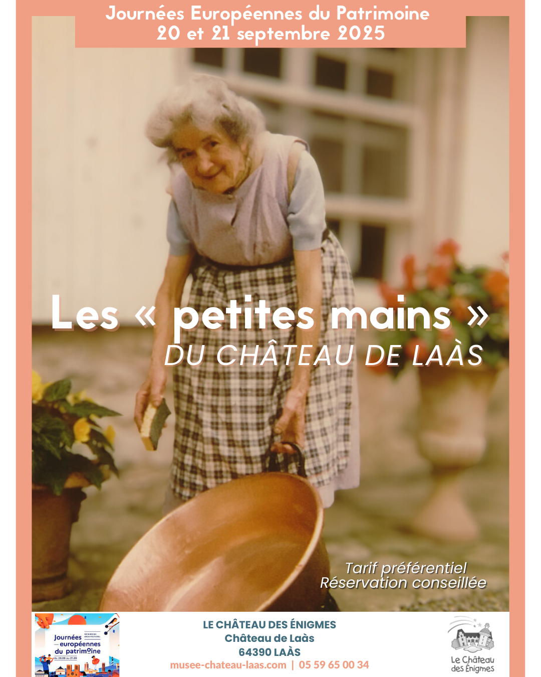 À l’occasion des Journées Européennes du Patrimoine 2025, le Musée du Château de Laàs met à l’honneur ses « petites mains ». À travers une collection inédite de photographies, découvrez le quotidien de Jeanne, Rémy et Louis, respectivement gouvernante, menuisier et jardinier du couple Serbat.